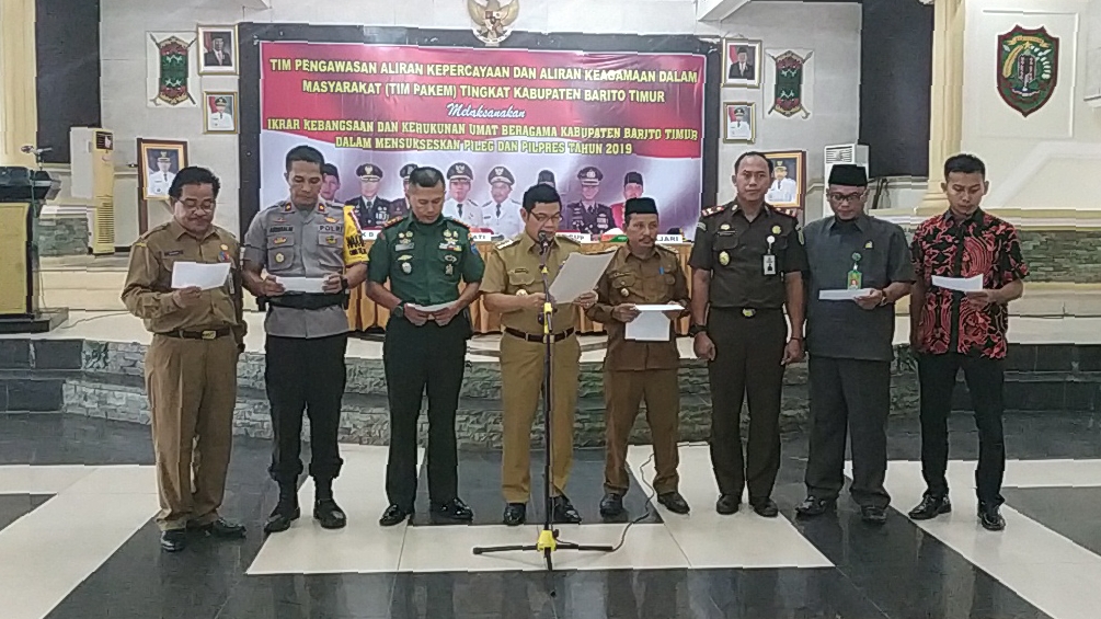 Kalteng IB- Kegiatan Ikrar Kebangsaan dan Kerukunan Umat Beragama oleh Tim Pakem dalam Mensukseskan Pemilu Serentak Tahun 2019 di Kabipaten Barito Timur Propinsi Kalimantan Tengah :