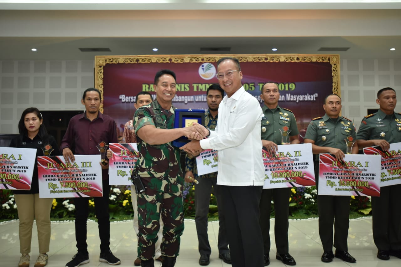 “Bagaimana tidak, dengan adanya TMMD maka dalam setiap tahun, dapat dilakukan pembangunan di 150 desa yang mengalami kesulitan dalam hal akses pembangunan.