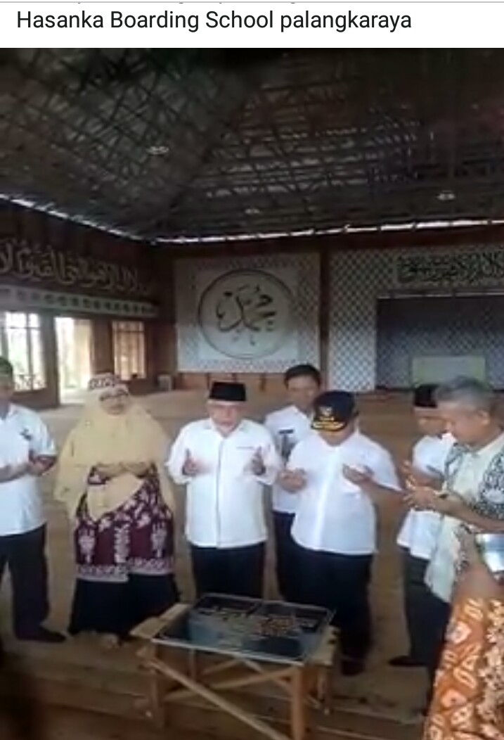 Foto:Al/red PELETAKKAN: Gubernur Kalteng Sugianto Sabran ketika meletakkan batu pertama pembangunan Hasanka Boarding School