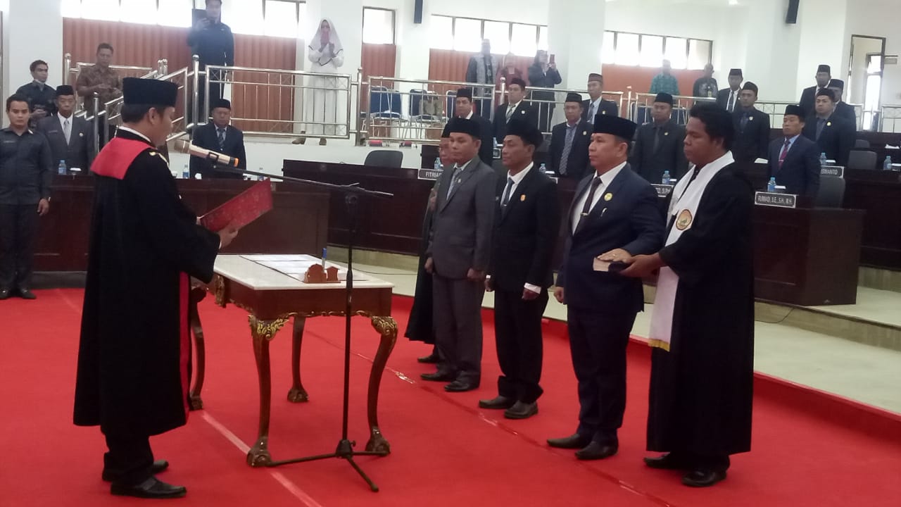 Keterangan photo:Pengambilan Sumpah Janji Unsur Pimpinan DPRD Murung Raya, dipimpin oleh Ketua Pengadilan Negeri Muara Teweh.