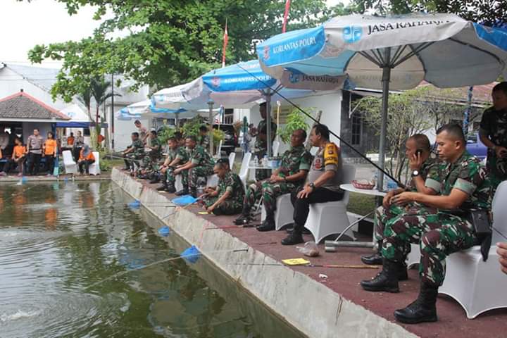 PALANGKARA -IB Dalam rangka HUT TNI ke 74 Poldam Kalteng adakan Lomba memancing. Nampaknya biasa namun melukis kan keakraban antara Polri dan TNI.