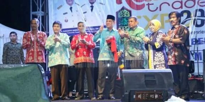 PALANGKARAYA, IB- Sekretaris Daerah Fahrizal Fitri, mewakili Gubernur Kalimantan Tengah, membuka secara resmi kegiatan Kalteng Trade Expo Tahun 2020 di Arena Pameran Temanggung Tilung, Palangka Raya, Sabtu (07/03/2020) malam. Pembukaan itu ditandai dengan penabuhan katambung (alat musik perkusi tradisional Kalteng) oleh Sekda Fahrizal Fitri yang didampingi Wakapolda Brigjen Pol. Indro Wiyono dan Kepala Dinas Dagperin Aster Bonawaty.