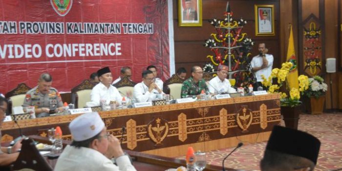 PalangkaRaya IB-Gubernur Kalimantan Tengah Sugianto Sabran bersama Ketua Gugus Tugas Percepatan Penganan COVID-19 Kalteng, Leonard S. Ampung dan Wakil Ketua Gugus Tugas, Suyuti Syamsul, menyampaikan perkembangan terbaru penanganan COVID-19 hingga hari ini, Selasa (24/03/2020) di Aula Eka Hapakat, Kantor Gubernur.