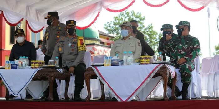 Sekretaris Daerah Provinsi Kalimantan Tengah (Prov. Kalteng) Fahrizal Fitri bersama Rombongan Kapolda Kalteng meninjau Kesiapan Personel dan Sarpras dalam Simulasi tersebut.