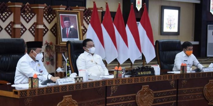 KALTENG-http://Inovasiborneo.co.id-Rapat Koordinasi Nasional Penanggulangan Bencana Tahun 2022 secara virtual dihadiri oleh Eakil Guberniur Edy Pratowo bertempat di Aula Jayang Tingang, Kantor Gubernur Kalimantan Tengah, Rabu (23/2/2022).