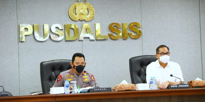 Jakarta – http://Inovasiborneo.co.id-Kapolri Jenderal Listyo Sigit Prabowo dan Menteri Perdagangan RI Muhammad Lutfi menggelar Video Conference dengan seluruh Kapolda dan Kapolres jajaran untuk memberikan pengarahan terkait dengan ketersediaan hingga pendistribusian minyak goreng guna memenuhi kebutuhan masyarakat.