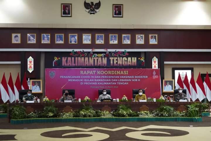 http://Inovasiborneo.co.id–Kalteng – Palangka Raya – Wakil Gubernur Kalimantan Tengah (Kalteng) H. Edy Pratowo pimpin Rapat Koordinasi (Rakor) Penanganan Covid-19 dan Percepatan Vaksinasi Booster Memasuki Bulan Ramadhan dan Lebaran 1443 H di Prov. Kalteng. Rakor berlangsung terpusat di Aula Jayang Tingang, Kantor Gubernur Kalteng, Kamis (24/3/2022).