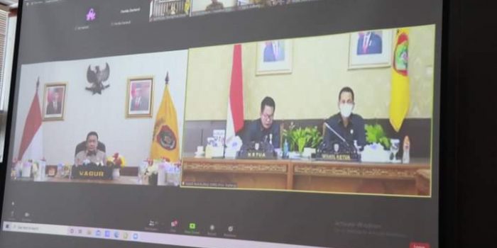 PALANGKA RAYA – IB-. Wakil Gubernur Kalimantan Tengah (Wagub Kalteng) Edy Pratowo mengikuti Rapat Paripurna (Rapur) Ke-6 Masa Persidangan I Tahun Sidang 2022 secara virtual, melalui konferensi video dari Ruang Rapat Wagub, Kantor Gubernur, Senin (28/03/2022). Turut hadir mendampingi Wagub yakni Kepala Dinas Kehutanan Sri Suwanto serta perwakilan dari Badan Keuangan Daerah, Bappedalitbang, dan Biro Pemerintahan.