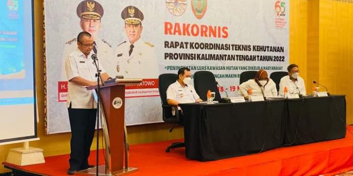 http://Inovasiborneo.co.id-Kalteng -Rapat Koordinasi Teknis Kehutanan Provinsi Kalimantan Tengah Tahun 2022 yang dihadiri Asisten Administrasi Umum Ir. Sri Suwanto mewakili Gubernur Kalimantan Tengah (Kalteng) membuka acara Rakor di Aquarius Boutique Hotel Palangka Raya, Rabu (18/5/2022).