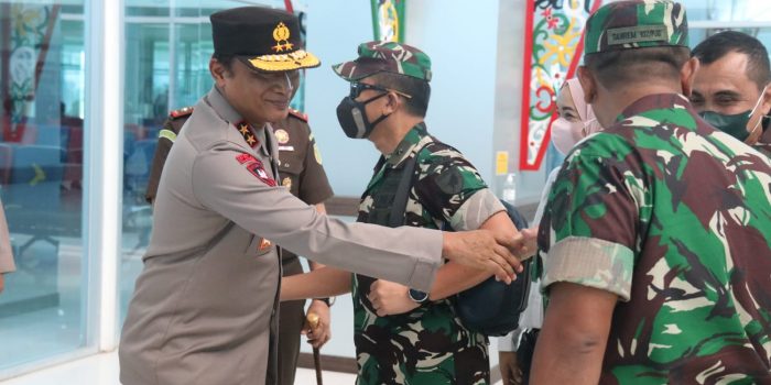 http://Inovasiborneo.co.id.-Kalteng – Kapolda Kalteng Irjen Pol. Drs. Nanang Avianto, M.Si. menyambut kedatangan Panglima Kodam XII Tanjung Pura Mayjen TNI Sulaiman Agusto, S.I.P., M.M. bersama Ketua Persit KCK Daerah XII Tpr, bertempat di Bandar Udara Tjilik Riwut, Kota Palangka Raya. Kamis (19/05/22) siang.