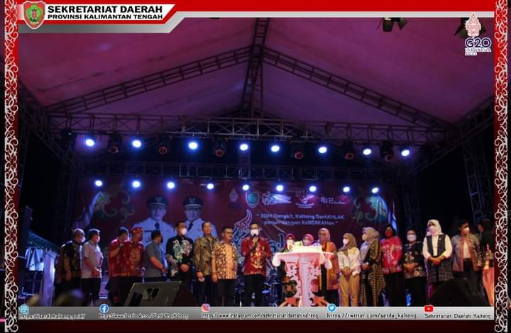 Perayaan Hari Jadi Central Borneo Souvenir Dekranasda Kalteng diselenggarakan di Arena Pameran Kalteng Expo 2020, Jumat malam (15/7/2022).