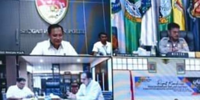 Sekretaris Daerah Provinsi Kalimantan Tengah (Kalteng) Nuryakin, didampingi Polda Kalteng dan Korem 102/PP, hadir mengikuti rakor melalui konferensi video dari Aula Jayang Tingang, Kompleks Kantor Gubernur, Kota Palangka Raya.