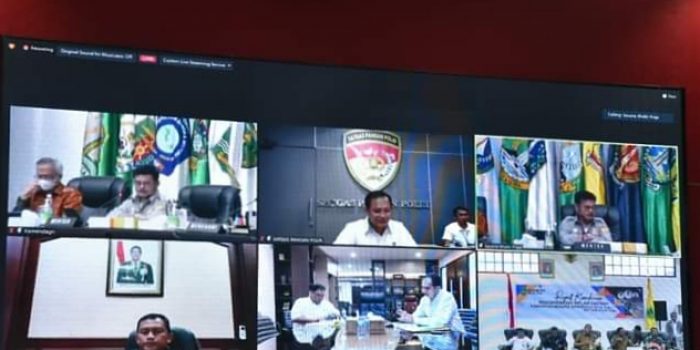 Sekretaris Daerah Provinsi Kalimantan Tengah (Kalteng) Nuryakin, didampingi Polda Kalteng dan Korem 102/PP, hadir mengikuti rakor melalui konferensi video dari Aula Jayang Tingang, Kompleks Kantor Gubernur, Kota Palangka Raya.