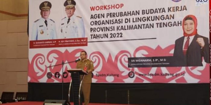 PALANGKA RAYA- http://Inovasiborneo.co.id-Asisten bidang Adminsktarsi Umum Sri Suwanto membuka Workshop Agen Perubahan Budaya Organisasi, di Hotel M Bahalap, Senin (21/11/2022).
