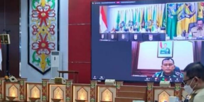 KALTENG-http://Inovasiborneo.co.id-Sekretaris Daerah Provinsi Kalimantan Tengah (Kalteng) Nuryakin, didampingi Polda Kalteng dan Korem 102/PP, hadir mengikuti rakor melalui konferensi video dari Aula Jayang Tingang, Kompleks Kantor Gubernur, Kota Palangka Raya.