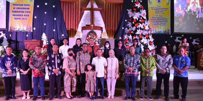 http://Inovasiborneo.co.id–PALANGKA RAYA-Perayaan Natal Pemkot Palangka Raya yang dihadiri oleh Wali Kota Palangka Raya Fairid Naparin beserta istri Avina Fairid Naparin, Ketua DPRD Kota Palangka Raya Sigit K Yunianto beserta istri, Wakil Ketua Komisi I DPRD Kalteng Kuwu Senilawati, Kepala Dinas Perhubungan Provinsi Yulindra Dedy, Forkopimda Kota, instansi vertikal, para tokoh adat dan tokoh masyarakat, ASN dan purna ASN Pemerintah Kota Palangka Raya