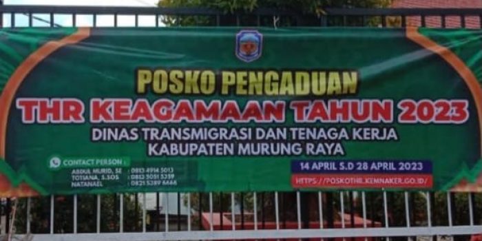 Inovasiborneo, Puruk Cahu – Pemerintah Kabupaten Murung Raya, Kalimantan Tengah, melalui Dinas Transmigrasi dan Tenga Kerja (Distransnaker) membuka posko pengaduan Tunjangan Hari Raya (THR) Idul Fitri 1444 hijriah bagi karyawan swasta di daerah setempat.
