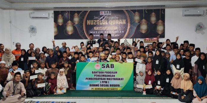 “Kita sangat mengapresiasi kegiatan Gema Ramadhan yang di Inisasi oleh DKM (Dewan Kemakmuran Masjid) Sabililah, dimana dalam kegiatan tersebut Program Pemberdayaan Masyarakat bidang keagamaan juga tersalurkan, adapun Program Pemberdayaan yang tersalurkan dalam kegiatan Gema Ramadhan tersebut antara lain pembagian kitab suci Alquran, Donasi Dana Pembinaan, serta sumbangan karpet/tikar untuk pondok pesantren Ashifaul Amin yang di terima langsung oleh pengasuh Pondok Pesantren, sumbangan berupa Dana Pembinaan juga disalurkan oleh para Mitra Kerja PT. Semesta Alam Barito dimana salah satu Mitra Kerja yang menyalurkan langsung sumbangan Dana Pembinaan tersebut antara lain PT. Pandawa Lima Plus dan PT. Harmoni Panca Utama Jobsite PT. SAB”, papar Heri R Superintendent External.