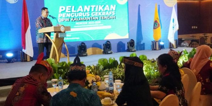PALANGKA RAYA-http://inovasiborneo.co.id– Wakili Gubernur, Asisten Bidang Perekonomian dan Pembangunan (Ekobang) Leonard S. Ampung hadiri Pelantikan Pengurus Gerakan Ekonomi Kreatif Nasional (GEKRAFS) Dewan Pimpinan Wilayah Kalimantan Tengah Periode 2023-2028 di Ballroom Kahayan 1, Swiss-Belhotel Danum, Palangka Raya, Kamis (22/6/2023) malam.