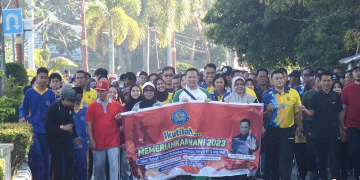 Pulang Pisau, IB – Badan Narkotika Kabupaten Pulang Pisau, Jumat 23 Juni 2023 mengadakan Jalan Santai dan Senam Bersama yang dipusatkan di Stadion H.M Sanusi. Kegiatan kali ini mengangkat Tema “Sayangi Diri Anda dan Keluarga,Jauhi Narkoba, Hidup Sehat Tanpa Narkoba” juga merupakan rangkaian acara menyambut Hari Anti Narkoba Internasional (HANI) yang diperingati 26 Juni tersebut disambut antusias masyarakat baik usia anak – anak hingga dewasa.