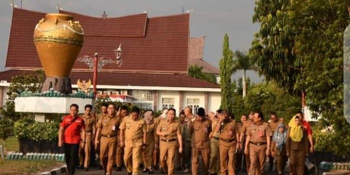 Gubernur, Wagub dan Sekda tampak di dampingi Kepala OPD di Kalteng. Pembangunan dan renovasi Bundaran Besar ini adalah inisiasi dari Gubernur.