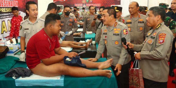 Palangka Raya – Pada kunjungan kerja (Kunker) perdananya di Mapolda Kalteng, Wakapolri Komjen Pol Drs Agus Andrianto, S.H., M.H. didampingi Kapusdokkes Polri Irjen Pol Dr. Asep Hendradiana, Sp.An., KIC., M.Kes, Kapolda Kalteng Irjen Pol Drs Nanang Avianto, M.Si. Widyaswara Madya Sespim Lemdiklat Polri Brigjen Pol Yusuf, dan Karo Lab Pusdokkes Polri Brigjen Prisma Heru Yulihartono serta unsur Forkopimda Kalteng. meninjau pelaksanaan bakti kesehatan dan bakti sosial, Kamis (7/9/2023) pagi.