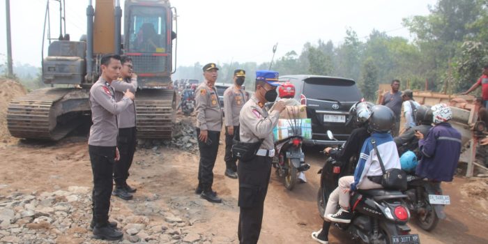 “Jadi awalnya kami ingin meninjau lokasi kebakaran di Desa Tanjung Taruna. Tetapi melihat arus lalu lintas yang macet, kami turun langsung membantu mengatur arus lalu lintas agar normal,” kata Brigjen Pol Mohamad Agung Budijono, usai mengatur arus lalu lintas.