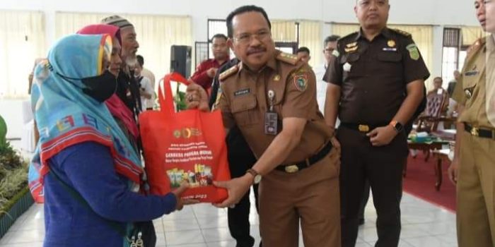 Acara diawali dengan penyerahan bantuan pangan secara simbolis kepada penerima bantuan yang terpilih dan diserahkan secara langsung oleh Sekda Kalteng H. Nuryakin.