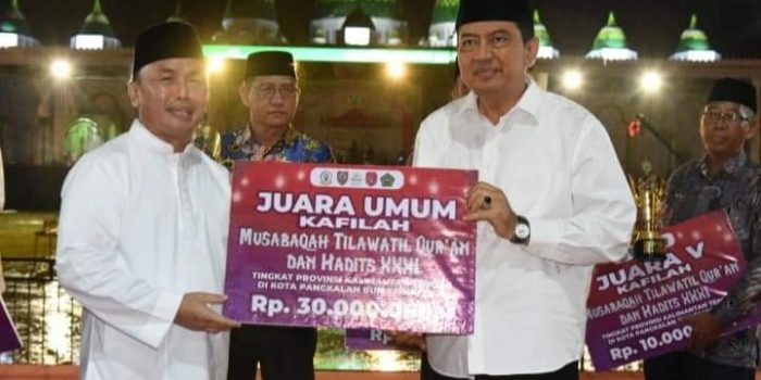 PANGKALAMBUN-http://inovasiborneo.co.id-Musabaqah Tilawatil Qur’an dan Hadits (MTQH) XXXI Tingkat Provinsi Kalimantan Tengah (Kalteng) Tahun 2023, Jumat (24/11/2023) malam, di Lapangan Sampuraga Pangkalan Bun, Kotawaringin Barat (Kobar). Pemukulan Bedug menandai ditutupnya event religi ini.
