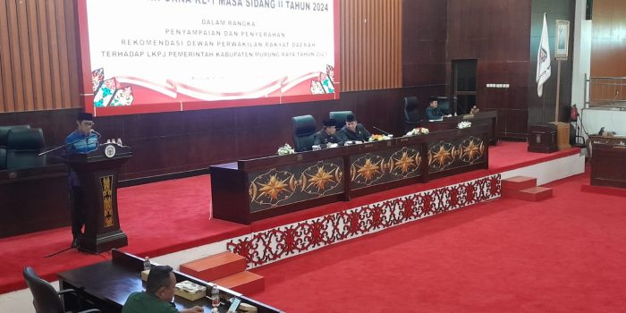 Puruk Cahu, http://inovasiborneo.co.id – Dalam rangka penyampaian dan penyerahan rekomendasi Dewan Perwakilan Rakyat Daerah terhadap LKPJ Pemerintah Kabupaten Murung Raya Tahun Anggaran 2023. Senin, (3/06/2024).