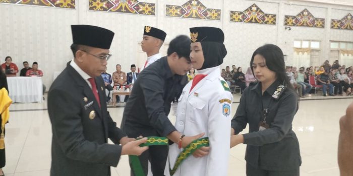 PURUK CAHU – Sebelum menjalankan tugamya pada mengibarkan bendera pusaka pada HUT ke -79 RI, puluhan anggota Pasukan Pengibar Bendera Pusaka (Paskibraka) Murung Raya (Mura) dikukuhkan oleh Pj Bupati Mura Hermon, Kamis (15/8) sore.