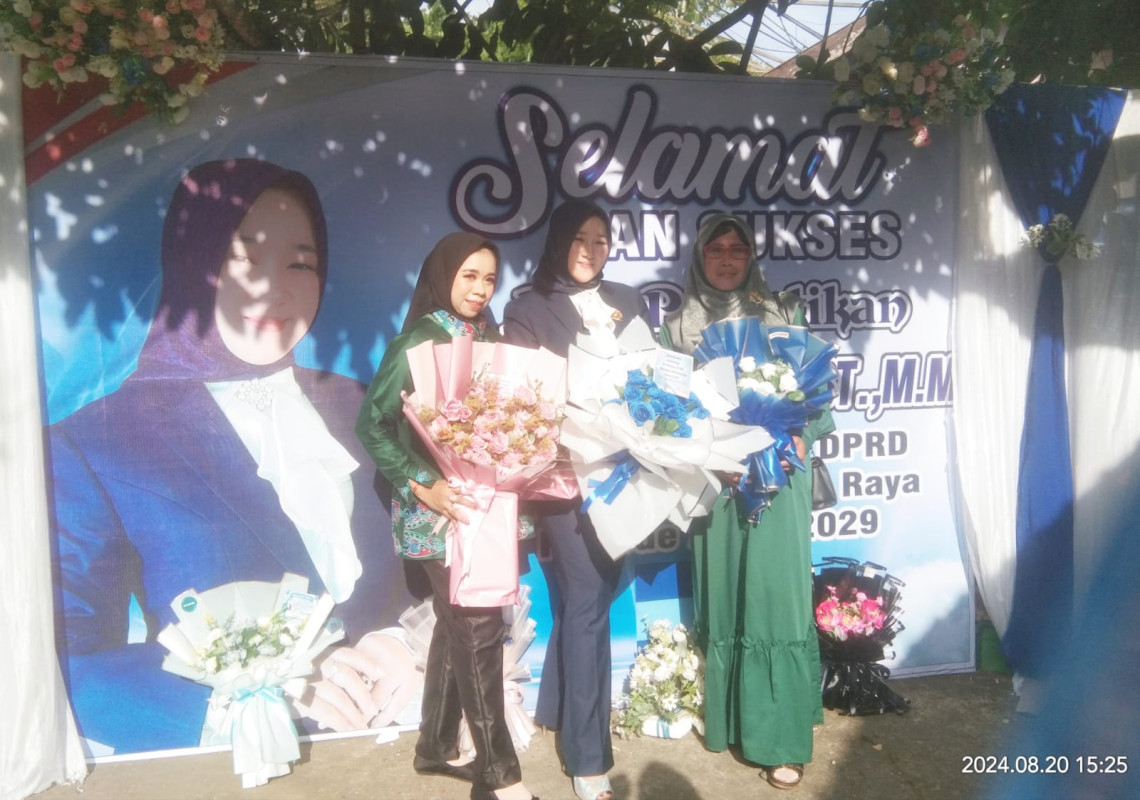 Tampak hadir langsung menyambut tamu undangan yang silih berganti datang sang suami yang juga menjabat sebagai Wakil Ketua (Waket) II DPRD Provinsi Kalimantan Tengah (Kalteng) H. Jimmy Carter dan Anggota DPRD Provinsi Kalteng terpilih periode 2024 – 2029.