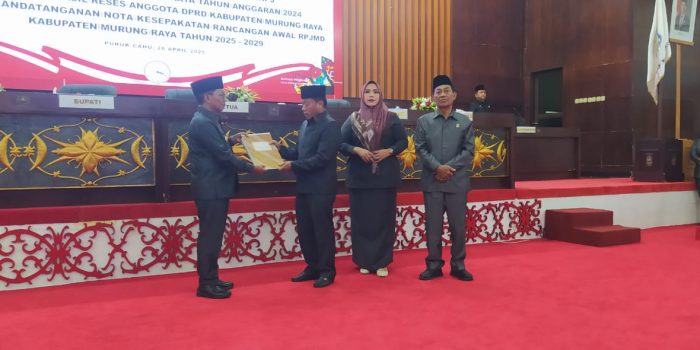 Puruk Cahu, inovasiborneo.co.id – Rapat Paripurna ke-7 Masa Sidang I Tahun 2025, Pemerintah Kabupaten Murung Raya dan DPRD resmi tandatangani nota kesepakatan atas Rancangan Awal Rencana Pembangunan Jangka Menengah Daerah (RPJMD) 2025–2029.