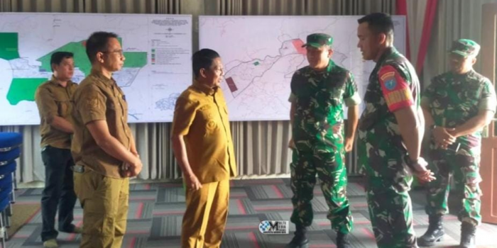 Tampak Kasi Ops Korem 102/Pjg menerima paparan dari Dandim 1013/Mtw dan Bupati Murung Raya