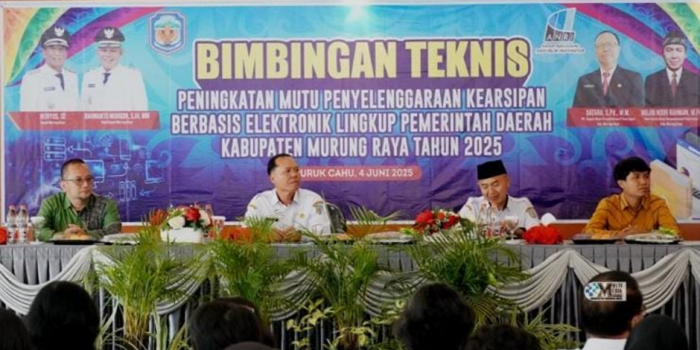 Puruk Cahu, https://inovasiborneo.co.id/ – Pemerintah Kabupaten (Pemkab) Murung Raya (Mura) melalui Dinas Perpustakaan dan Kearsipan menggelar Bimbingan Teknis (Bimtek) Penigkatan Mutu Penyelenggaraan Kearsipan Berbasi Elektronik. Kegiatan bimtek ini diikuti ratusan orang dari perwakilan seluruh Perangkat Daerah lingkup Pemkab Mura, bertempat Aula Cahai Ondhui Tingang, Kantor Bupati Mura, Rabu (4/6/2025).