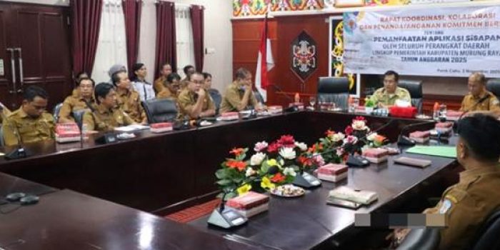 Puruk Cahu http://inovasiborneo.co.id – Pemerintah Kabupaten (Pemkab) Murung Raya (Mura) melalui Bagian Administrasi Pembangunan Setda menggelar Rapat Koordinasi Pemanfaatan Aplikasi Sistem Informasi Pelaksanaan Pengendalian Pembangunan (SiSAPAN) yang dilaksanakan di aula A kantor Bupati Mura, Senin (3/11/2025).