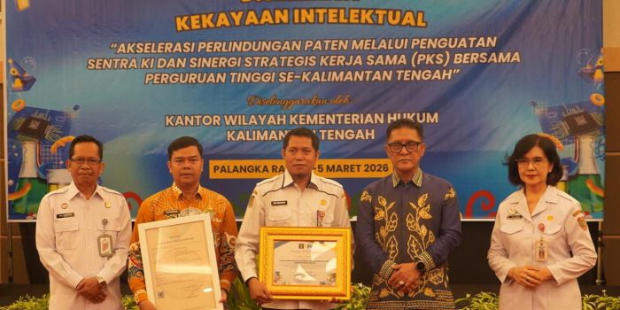 Palangka Raya – Pemerintah Provinsi Kalimantan Tengah terus mendorong penguatan Sentra Kekayaan Intelektual (KI) di lingkungan perguruan tinggi sebagai langkah strategis dalam memperkuat ekonomi berbasis inovasi. Hal tersebut ditegaskan Plt. Asisten Pemerintahan dan Kesejahteraan Rakyat Linae Victoria Aden saat membuka kegiatan diseminasi kekayaan intelektual di Batang Garing Ballroom Hotel Best Western Palangka Raya, Rabu (4/3/2026).